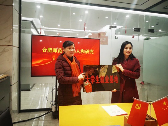 最后,王家正一行与人和集团代表在会议室内洽谈了就业实习基地共建事宜,这是继12月17日下午,安徽人和市场研究咨询有限公司代表来我院开展就业实习合作洽谈达成初步意向后的正式签约。人和集团副总经理刘良进介绍了公司的事业发展和人才需求的相关情况。他表示,安徽人和市场研究咨询有限公司是一家从事第三方评估、调查、咨询的专业服务机构,希望今后能与数学与统计学院在学生就业实习、课程置换、校内实训基地建设、课题研究、师资培养等五大方面开展合作。王家正对人和集团的实习就业共建方案给予了认可,他介绍了学院专业设置、人才培养和实习就业的基本情况。随后,双方就合作细节开展了进一步的讨论。最后,双方签署了就业实习共建协议书并进行了就业实习基地挂牌。