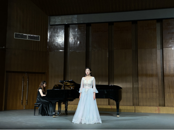 音乐会紧扣“思政”的主题,选取了古诗词艺术歌曲《关雎》、《越人歌》、《长相知》、《长相思•惜别》、《红豆词》等,展现了中国古诗词的魅力。一首气势磅礴,雄浑豪放的《沁园春•雪》展示了我国的大好河山壮丽美景,抒发了作者的壮志豪情。下半场近现代艺术歌曲《春思曲》、《岁月悠悠》、《长城谣》、《怀念曲》等,表达出艺术歌曲的现实主义色彩和社会主义坚强不屈的斗争历史。《故园恋》、《天涯望月》、《军营飞来一只百灵》等现代艺术歌曲表达出我们当代生活的欣欣向荣,最后以一首《醉了千古爱》为这场音乐会完美结尾。雪妮老师作为2018级音乐表演班钢琴伴奏艺术课程的老师,与同学们都非常重视这场活动,积极的准备各项工作。