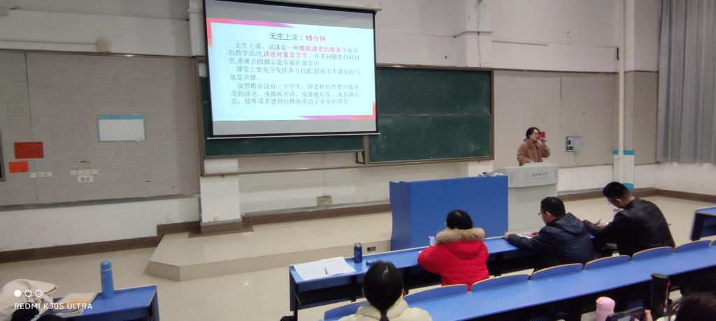李扬老师结合自身经验,以中学化学教师入编考试为蓝本,着重讲解教师入编考试中对无生上课的要求,点明同学们在无生上课过程中需要注意的地方。李扬老师通过言语、图片、视频等示范,加以细致、耐心地讲解,为同学们带来了一场饕餮盛宴。