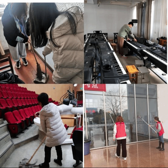 领导重视,确保安全和实效。我院学生根据自身课程时间安排,分批次对校园、食堂、音乐楼琴房、教室、音乐厅等进行卫生大扫除。为确保安全,学院领导和班主任多次前往劳动场所进行看望。这种不同于课堂教学的教育模式让学生情绪高涨,在劳动中,坚定了同学们保质保量完成任务的信心和决心。通过劳动实践,同学们锻炼了思维、强健了体魄、提高了审美情趣,真正达到了“以劳树德,以劳增智,以劳强体,以劳育美,以劳创新”的教育目的。