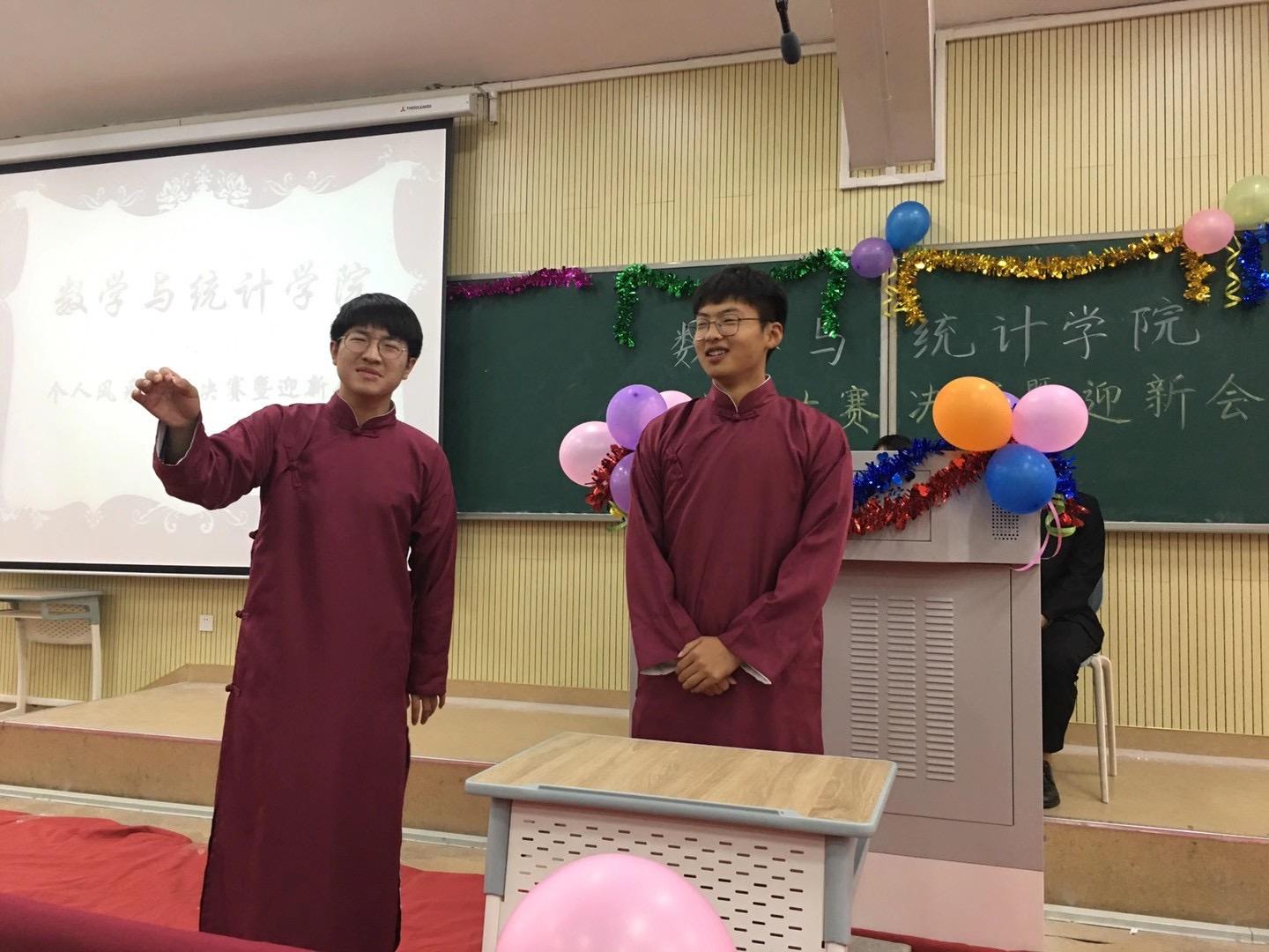 本网讯 为加强学生间的互动交流,促进学生全面发展,数学与统计学院于11月14日在铭传楼A101成功举办第四届个人风采大赛决赛。此次比赛的评委由数学与统计学院党委书记郑支农、分团委书记刘全亚、2020级辅导员王志、外国语学院冯晓敏、艺术传媒学院邰文强以及数学与统计学院学生会执行主席王子杰、冯子迈、汪锦洋,素质拓展中心主任张骞等人共同担任,此次比赛的主持人是赵宇囡,秦光宗,于小虎,王秋迎。