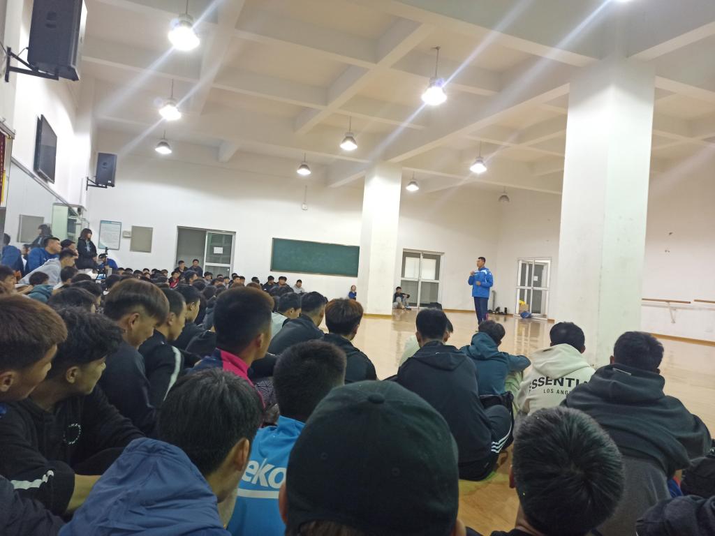 本网讯 为进一步加强运动训练专业学生教学技能培养,提高学生的教育教学能力,搭建教学相长的交流平台。11月2日,在锦绣校区体育馆二楼舞蹈房,体育科学学院运动训练系组织开展“无生上课”实践活动,邀请曹垚和王金晶两位老师,石可、杨涛和舒敏三位学生主讲,运动训练系汪辉老师、廖顺建和陆保云老师及全体学生参加,其中,17级和18级学生现场观摩,19级和20级通过线上直播观摩。运动训练系主任游永豪副教授主持。