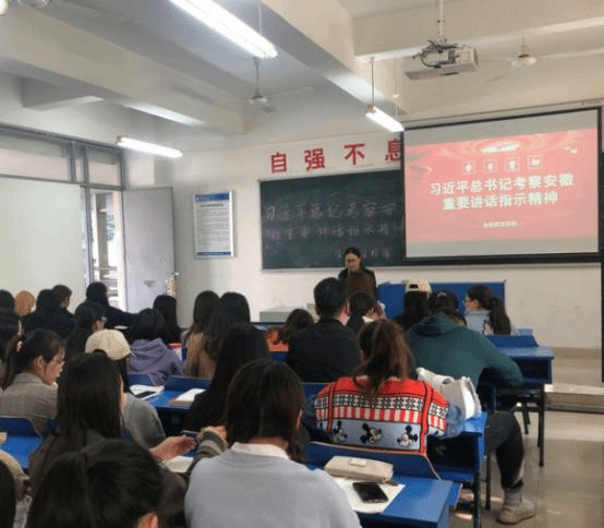 本网讯 10月30日中午,音乐学院召开学生党支部会议,认真传达学习习近平总书记考安徽重要讲话指示精神。音乐学院党总支书记王邦翠作宣讲报告。