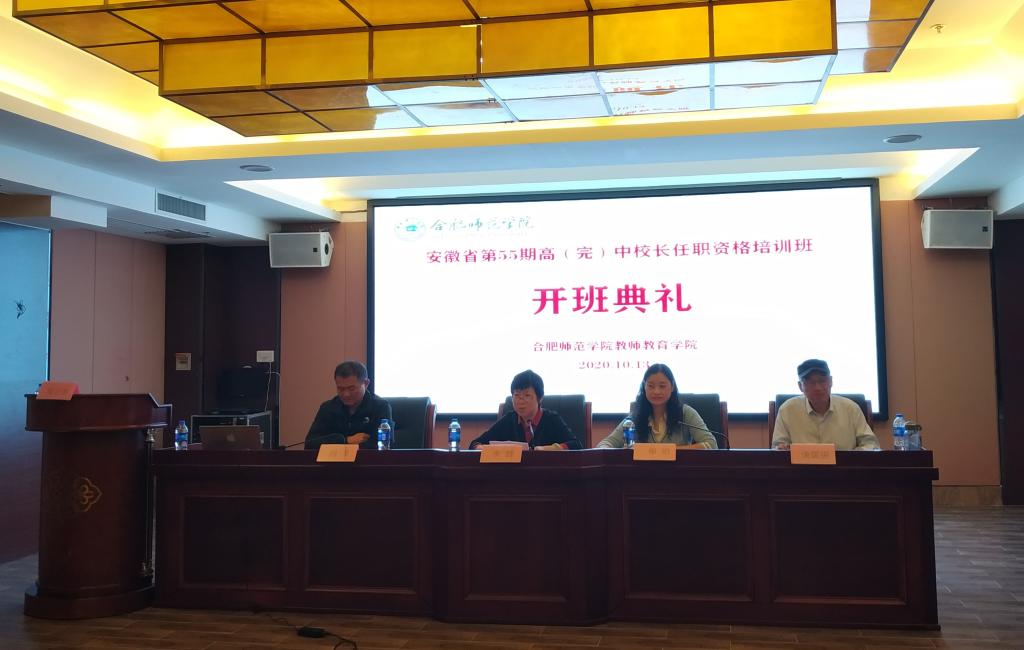 本网讯 10月13日上午,安徽省第55期高(完)中校长任职资格班在合肥滨珍酒店顺利开班。教师教育学院领导、培训班管理教师以及来自全省各地77位校长班学员参加了开学仪式。开班仪式由教师教育学院副院长闫龙主持。