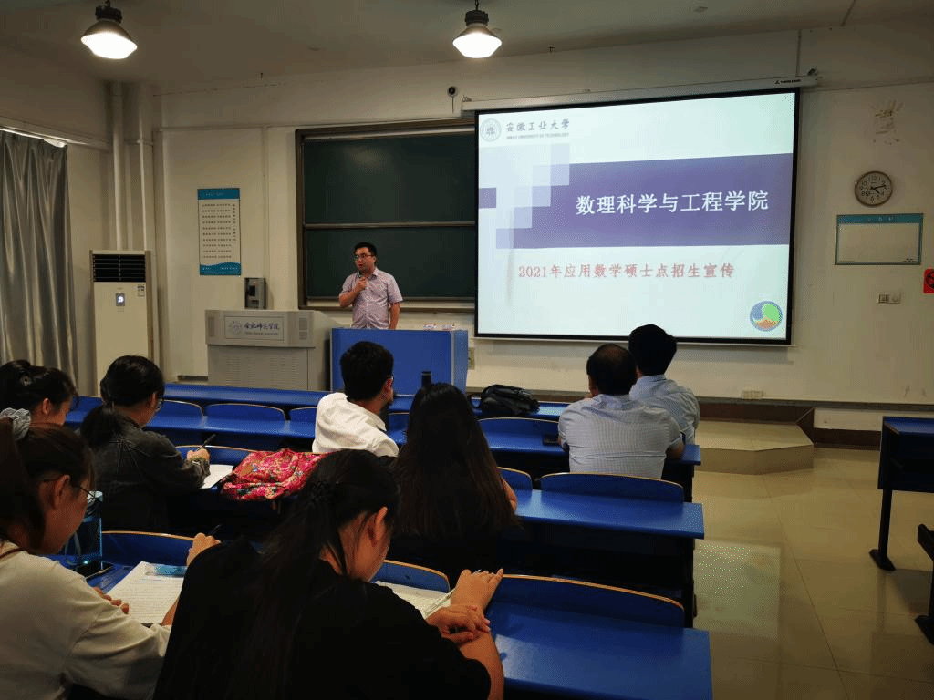 首先,安徽工业大学数理科学与工程学院系主任杨刘分别从安徽工业大学及数理科学与工程学院概况、应用数学硕士点概况、学科和研究方向、培养条件与成果等方面进行了详细讲解,重点介绍了学院在师资队伍、研究方向、人才培养等方面的优势,鼓励beat365学子积极报考,实现人生理想。
