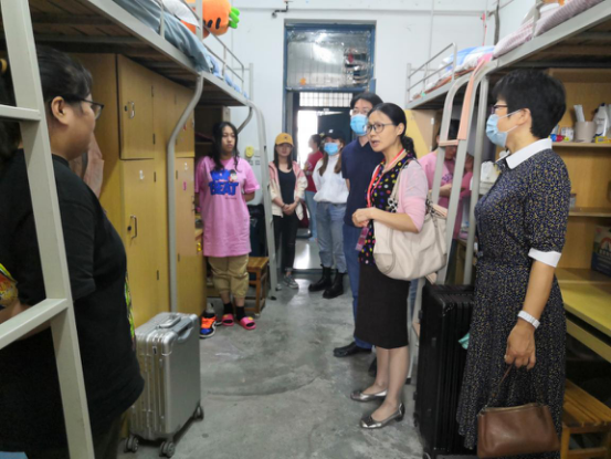 本网讯 9月20日,音乐学院迎来了2020级新同学。音乐学院党总支书记王邦翠、党总支副书记蔡成梅、副院长李劲松以及教学秘书和全体辅导员深入2020级新生宿舍,走访看望新同学,并亲切慰问,让新同学充分感受到音乐学院大家庭的温暖。