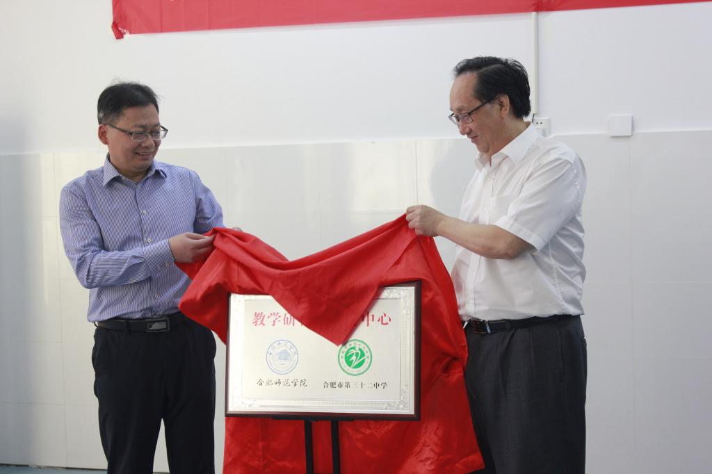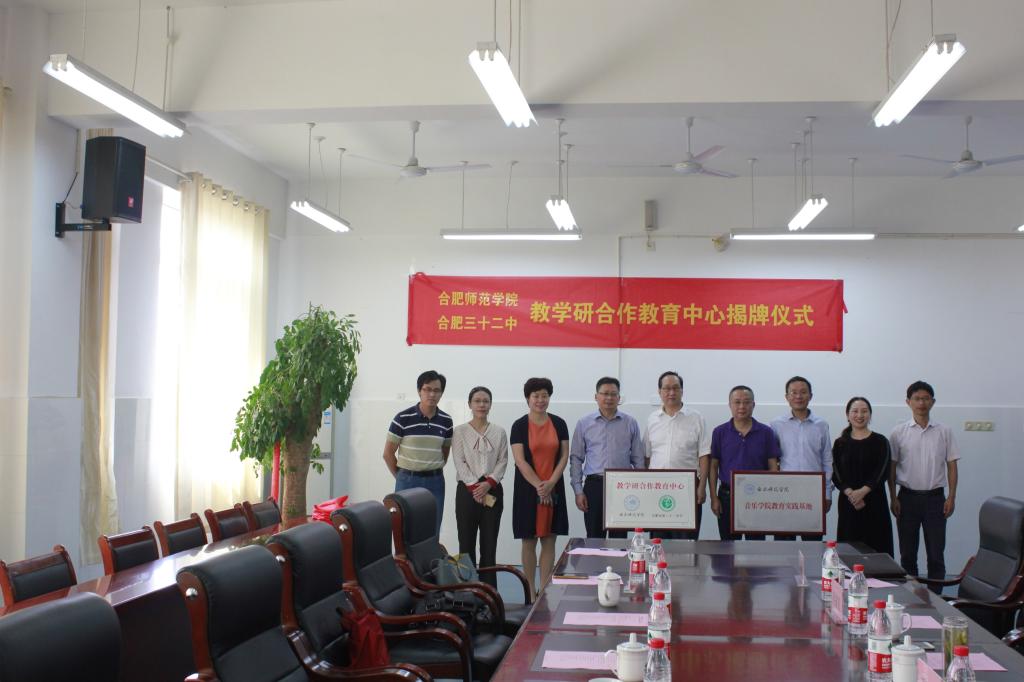 本网讯 9月16日上午,我院副院长姚本先,教务处处长胡昂,副处长李健,音乐学院院长罗可曼,音乐学院副教授陆伟、赵敏与包河区委副书记、党校校长徐生彬一行赴合肥市第三十二中学参加beat365唯一官方网站和合肥市第三十二中学教学研合作教育中心的揭牌仪式。合肥市第三十二中学校长王强,副校长胡习武,教科室戴宏涛主任等人出席会议。