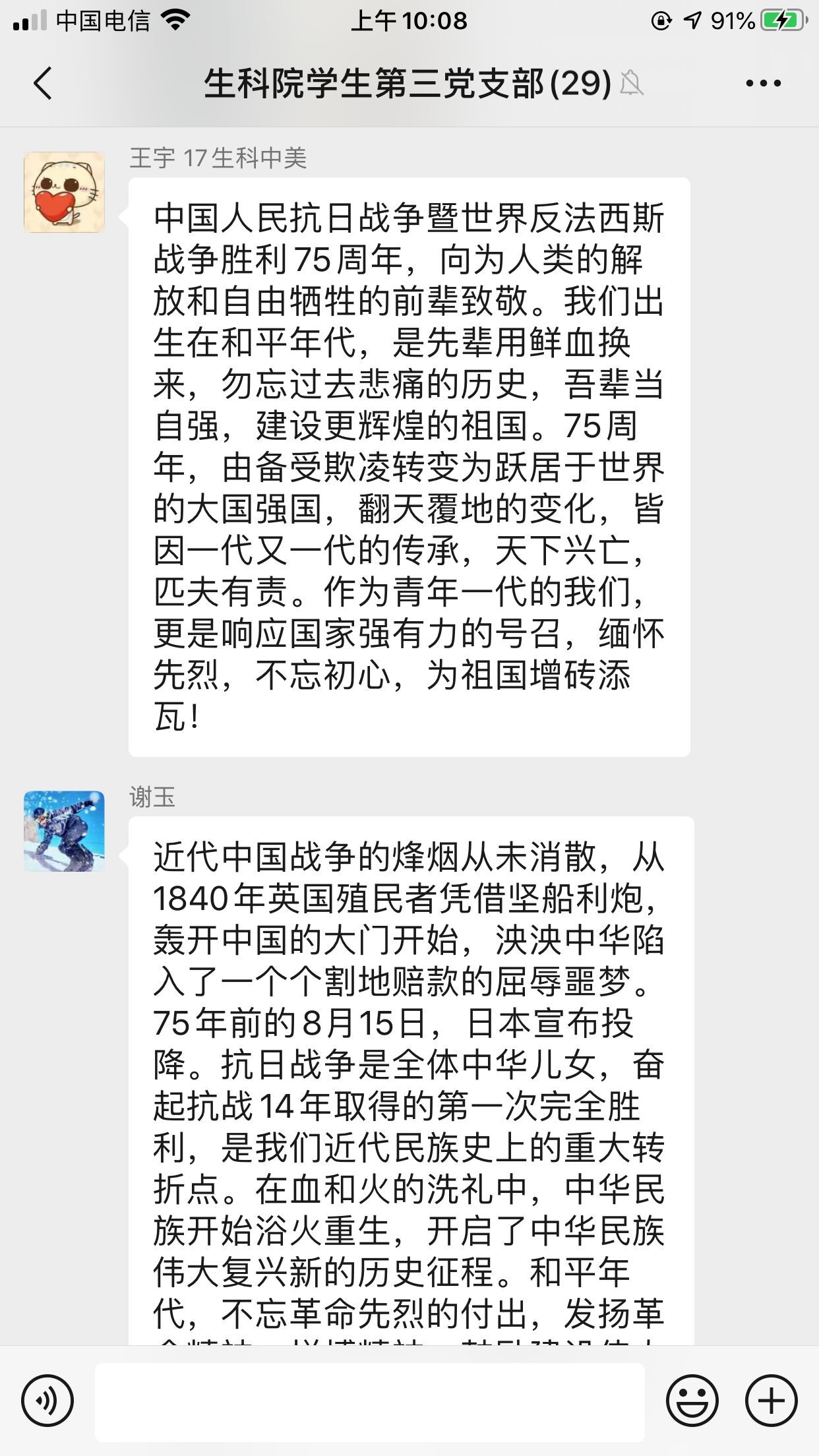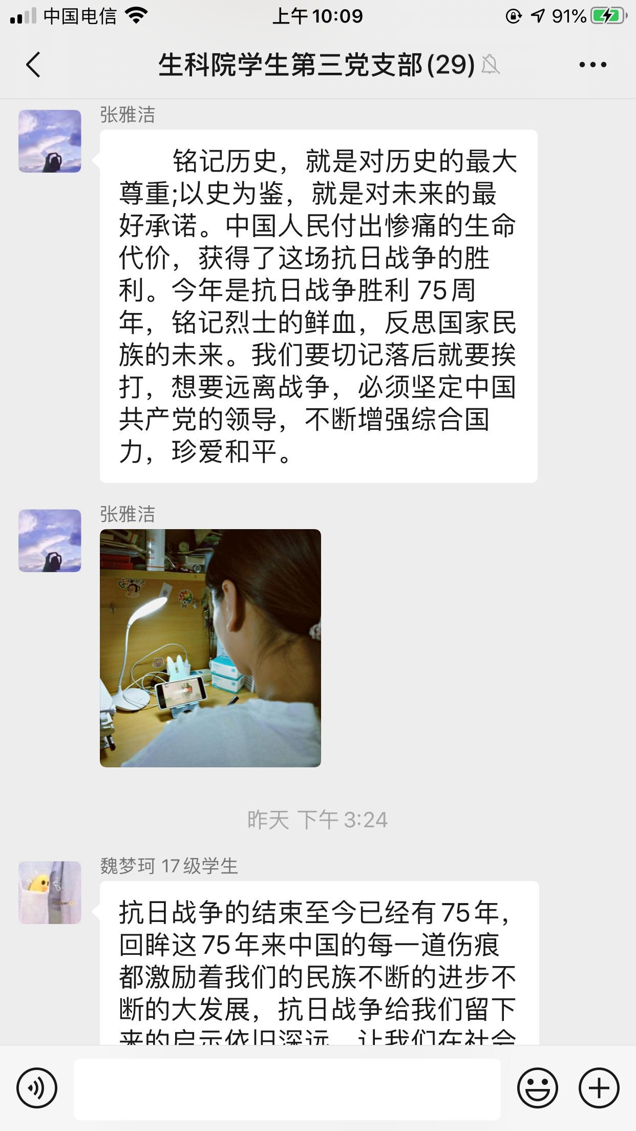 魏梦柯说,抗战胜利已75周年,中国历经的磨难都成为激励民族奋勇向前的动力,也让学生深刻认识到党员要充分发挥先锋模范作用,勇于担负时代赋予的使命。