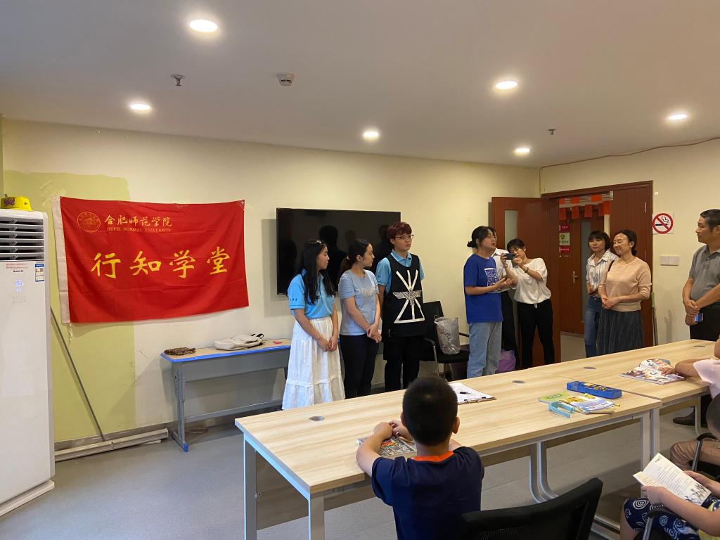 本网讯 7月27日下午,经济与管理学院党委书记沈辉、副书记陶敏和分团委书记赵燕一行来到庐阳区鲁园社区党群服务中心,看望和慰问在这里开展行知学堂的小先生和小学员们。