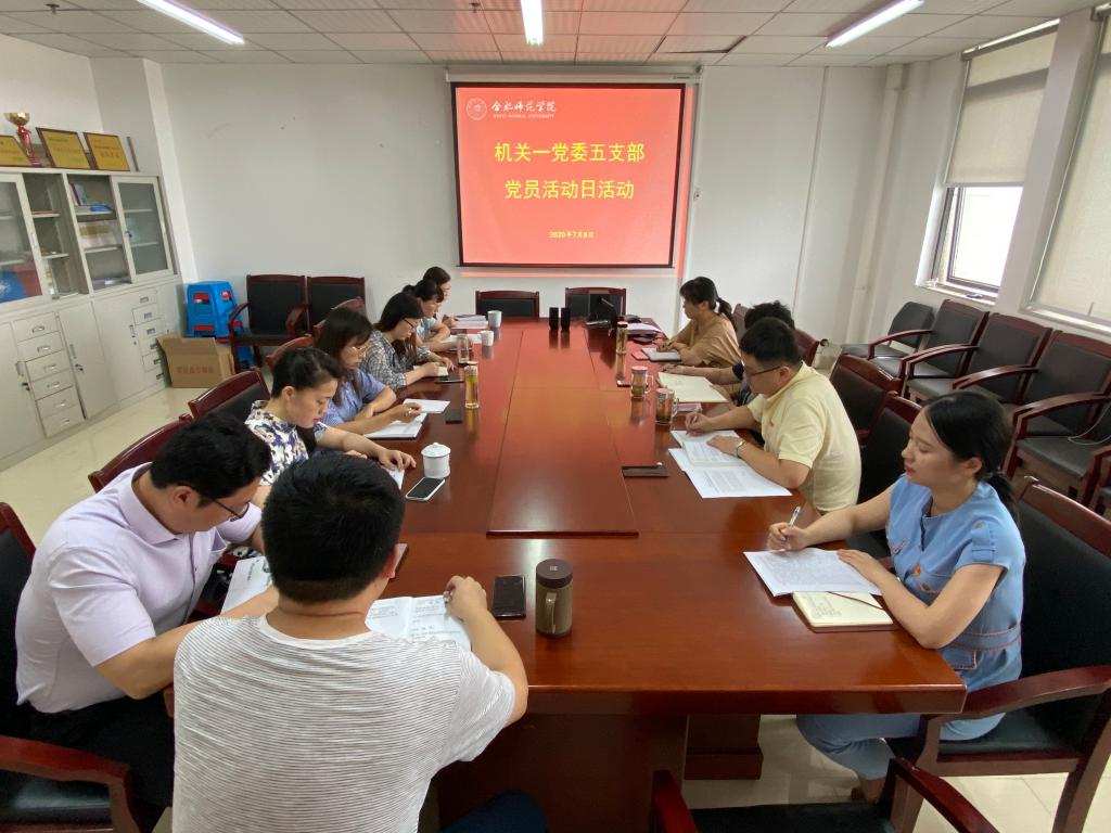 本网讯 7月8日下午,机关第一党委第五党支部在行知楼开展党员活动日活动,支部全体党员参加活动。