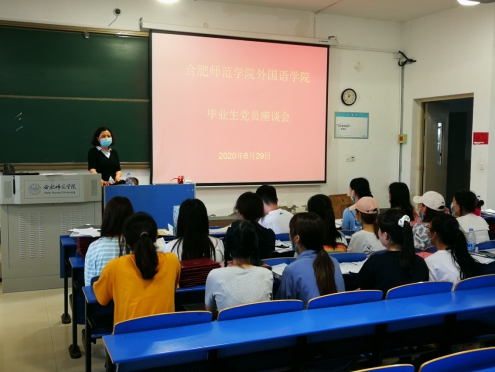 本网讯 6月29日下午,外国语学院学生党支部在逸夫楼105举办了毕业生党员座谈会及重温入党誓词的活动,支部书记方媛主持会议。