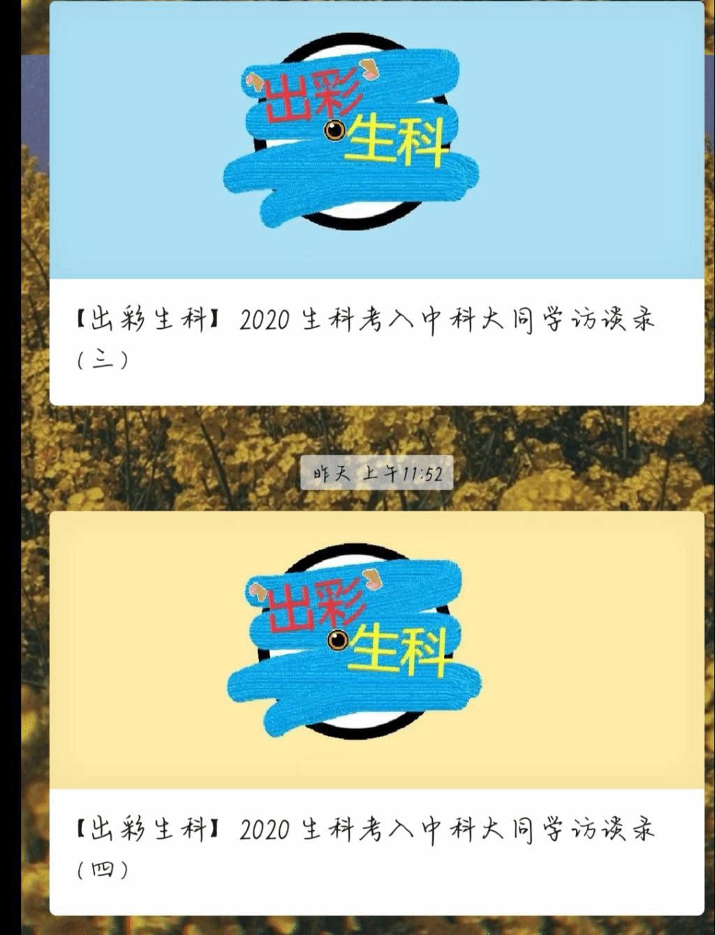 通过生命科学学院学生会微信平台,用学生喜闻乐见的新媒体方式和活泼的语言,连续推送多名生命科学学院考入中科大研究生的考研心得,让典型事迹贴近学生,贴近校园生活,让他们的学习经历、奋斗精神,成为全院学生的思想引领、精神激励。