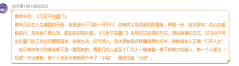 本次活动让每一位同学都学到了不同书籍的丰富内容,在阅读中提升自己的文化素养。《红岩》让同学们被伟大先烈的英勇无畏深深感染,更加坚定了大家对共产主义的信仰;《习近平在厦门》让同学们深刻领悟了“年轻人要自找苦吃”、舍“小我”成“大我”的远大意义;《活着》让同学们敢于正视生活的困难,珍惜人生的每一秒时光……