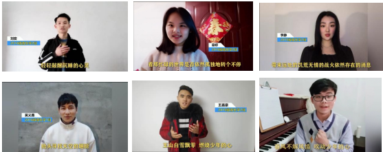 本网讯 近日,在校党委的号召下,在音乐学院党总支、校团委及学工部的组织宣传下,音乐学院投入疫情防控文艺作品创作阵营中,青年学子结合自身的专业特长,采用线上远程录制的方式隔空合唱,为抗疫保卫战发声助力、传递爱心,鼓励人们一起渡过难关,用歌声祝福祖国早日抗疫成功,为武汉加油,为中国加油。