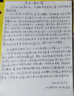2017级英语(师范)3班吕艺文说:“通过观看全国大学生同上一堂疫情防控思政大课,令我受益匪浅,感触良多。这次加长版的寒假,让我真切地感受到我们与所处的时代同呼吸,共命运。一个个逆行者用行动向我们诠释了什么是大爱无疆。他们用最美的身影,诠释了生命的意义!我相信,在经历过困苦与磨难之后,我们新时代青年必将成为振兴中华民族,推动新时代中国发展的主力军,与时代同步伐、共命运,书写美丽的新时代篇章。
