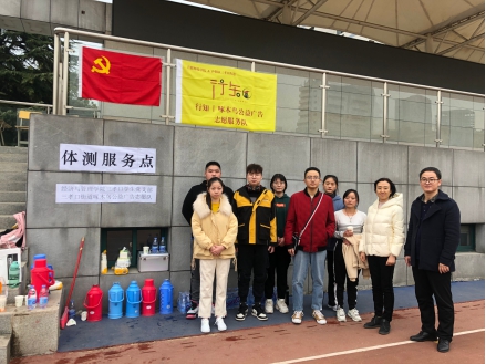 本网讯 12月15日,我院在三孝口校区进行了体质健康测试。经济与管理学院三孝口学生党支部联合三孝口街道啄木鸟公益广告志愿队、16级酒店管理班和18级人力资源管理班组成党员志愿者体测服务点,在体测的整个过程中为参加体测的同学们提供后勤服务,准备了热水、矿泉水、纸巾、糖果等物品在同学们需要之时予以提供,也时刻准备着为身体不适的同学及时提供送医服务,为同学们在进行体质测试时提供良好的安全保障。
