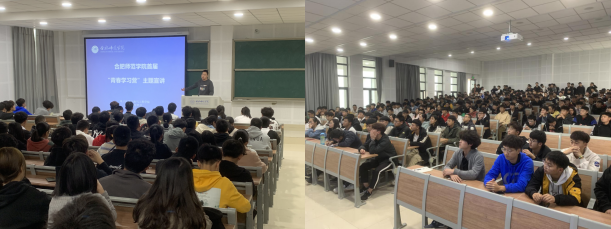 缪传付首先从高中生活与大学生活的变化,分享自己进入大学的学习生活经历。随后,他介绍了青春学习营的学习形式主要包括集中开展讲座、小组开展多种活动等,并就学习内容进行介绍。