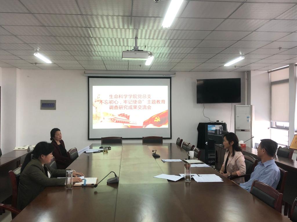 本网讯 10月31日下午,生命科学学院党总支在行知楼1502会议室召开“不忘初心、牢记使命”主题教育调研成果交流会,党总支书记郭桃芬主持会议。党总支副书记、院长徐忠东,副院长朱桂兰、组织员孙淑兰参加会议。