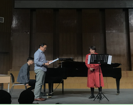 本网讯 10月31日上午,由浙江音乐学院声歌系陶维龙教授对我院青年声乐教师演唱指导的声乐大师课在锦绣校区音乐厅圆满结束。现场吸引了大量声乐爱好者和师生前来观看学习。