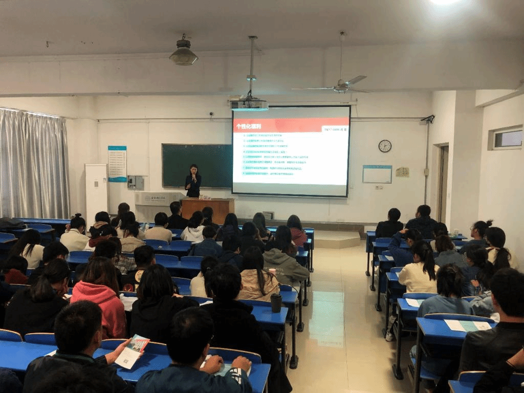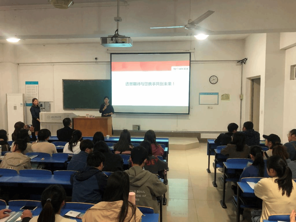招聘会由上海透景生命科技股份有限公司人力资源部郑老师主讲,通过播放宣传片、PPT展示、面对面交流等方式向同学们介绍公司的概况、职业发展方向、人员需求以及薪资待遇等。同学们就职业发展、晋升道路、薪资待遇、岗位实习等方面进行踊跃提问,宋经理对每位同学提出的问题都给予了详细的解答。