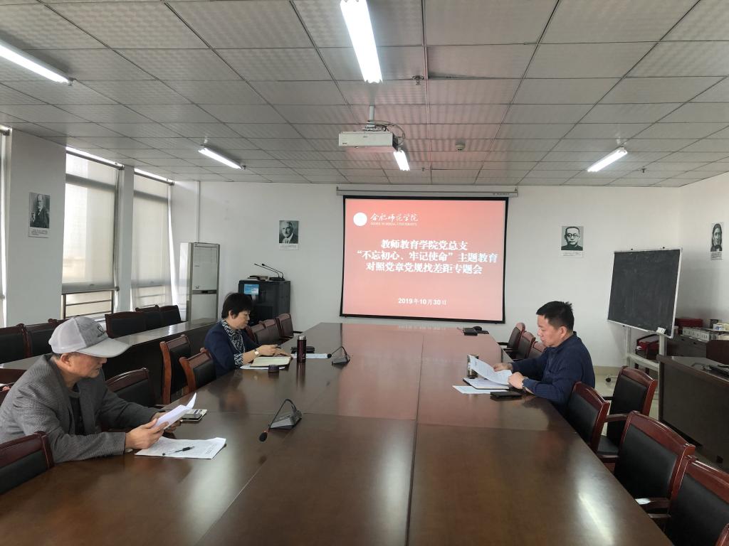 本网讯 10月30日下午,教师教育学院在行知楼710会议室召开对照党章党规找差距专题会议,会议由党总支副书记王东明主持。党总支副书记、院长李群,副院长闫龙参加会议。