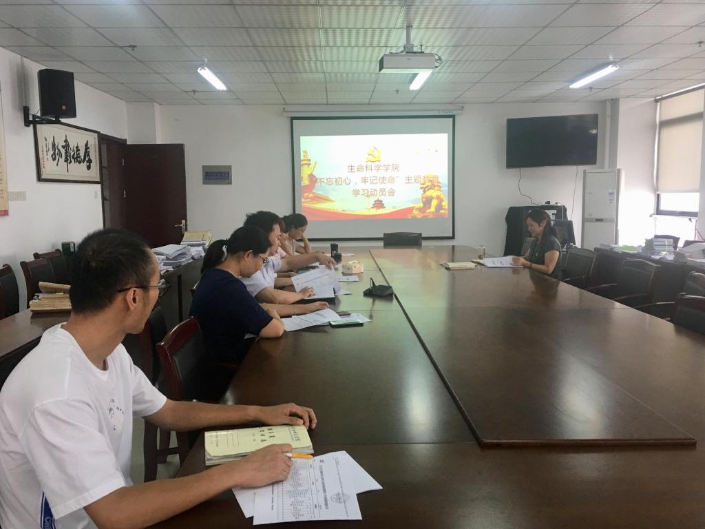 9月18日,生命科学学院在行知楼1502开展党总支学习动员会。党总支全体委员参加会议,会议由党总支书记郭桃芬主持。会上,郭桃芬传达了中央、省委“不忘初心、牢记使命”主题教育第一批总结暨第二批部署会议精神,并领学了《中共beat365唯一官方网站委员会关于开展“不忘初心、牢记使命”主题教育工作方案》。郭桃芬强调,处级党员领导干部要认真学原著悟原理,抓好个人自学,重视调查研究。