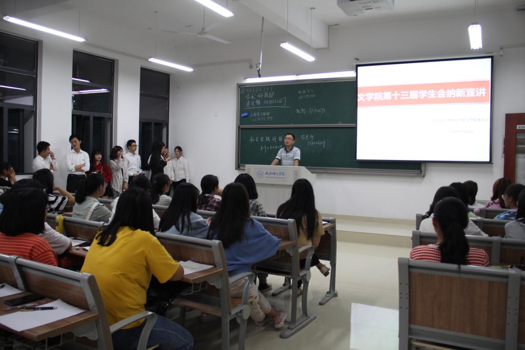 本网讯 9月20日晚,文学院分团委组织学生组织在滨湖校区开展招新宣讲活动。