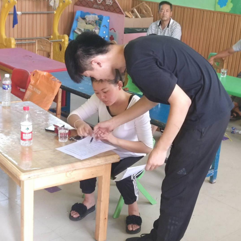 8月2日,活动正式开始,团队分散为两人一小组,深入淮南市潘集区夹沟镇、高皇镇、曹庵镇老圩村等地点,每组携带60-70份问卷挨家挨户敲门,将问卷发放到每个家长手中。本次问卷调查共设置14个小问题,家长们积极配合、认真填写,成员认真解答家长疑惑、及时记录,一定程度上了解了家长对孩子英语教育的重视程度。