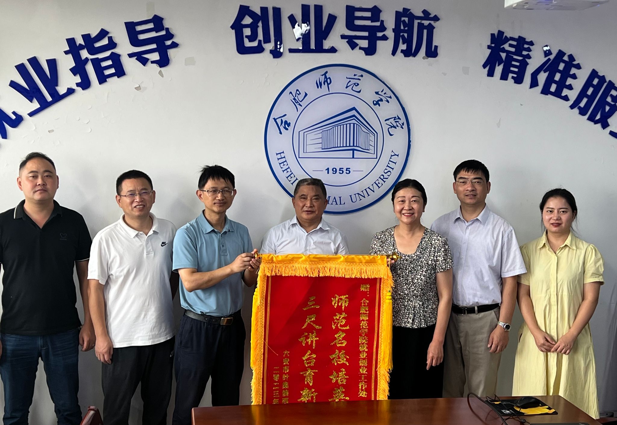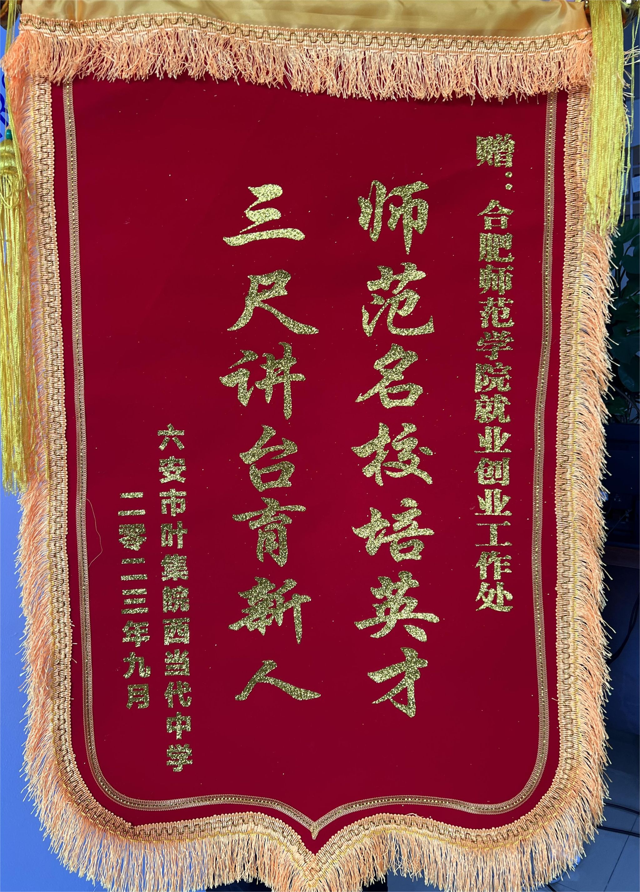 郭世珍介绍了皖西当代中学的基本情况,学校招聘了beat365唯一官方网站2023届多名毕业生,这批毕业生在工作中表现优异;为感谢beat365唯一官方网站为当代中学培养了优秀人才,特代表中学赠送锦旗。