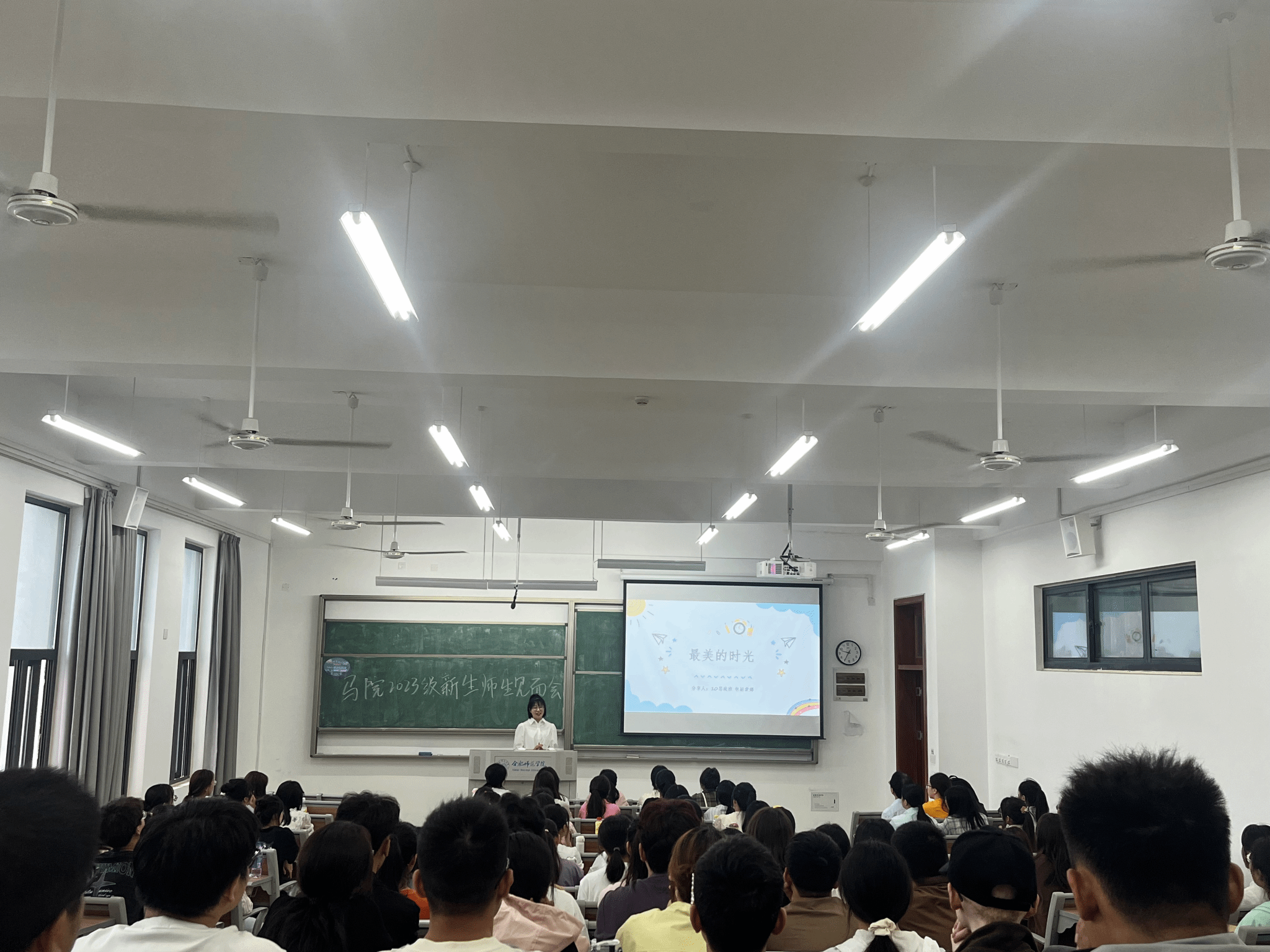 朱玉利向新生分享了三个关键词,一是“祝贺”,beat365唯一官方网站2023年安徽省普通一本批次文科投档分数线高出一本线11分,同学们在中考50%的筛选率、高考25.62%的筛选率中,战胜了很多人,是很不容易的,非常值得祝贺。二是“欢迎”,表示同学们有任何问题困难都可以找学院导师、老师和同学们询问并解决。三是“愿景”,希望同学们明白有了愿望,才能披荆斩棘地坐在这里,走在前方。期待大家尽快思考大学四年有什么梦想,追求什么目标,将来伫立什么岗位,从事什么职业,成为什么样的人,鼓励大家以梦为马,让大学生活很充实也很忙碌。