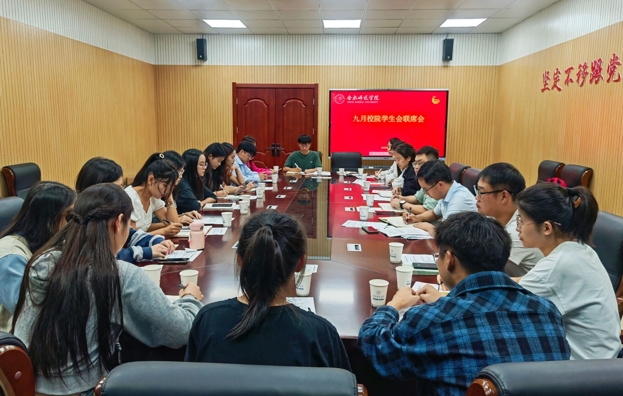 本网讯 9月20日中午,2023年9月校院学生会联席会议在锦绣校区共青之家会议室召开,院团委书记、学生工作部部长刁文彬,院团委副书记何磊,院团委组织建设部魏晓倩、院学生会主席团成员和各二级学院学生会秋季执行主席参加会议。