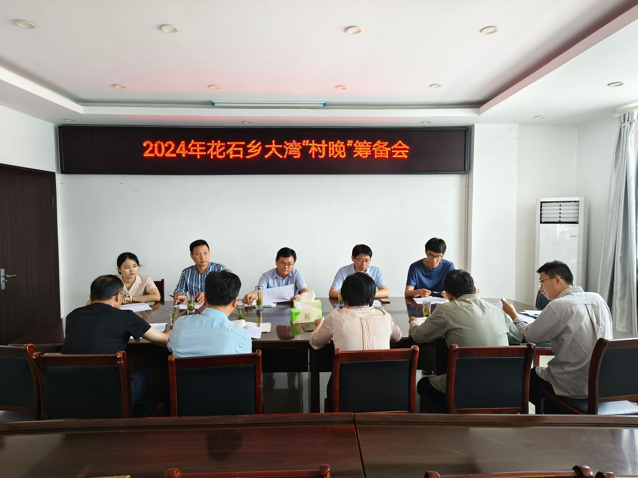 在花石乡政府进行的“2024花石乡大湾村晚筹备会”中,赵帮恚从村晚主题、节目方向等方面给出指导性建议。音乐学院院长李劲松就晚会节目顺序进行梳理,并对指导排练做出布置。美术与设计学院副院长吴道义与金寨县及花石乡工作人员探讨大湾村村标设计创意理念。