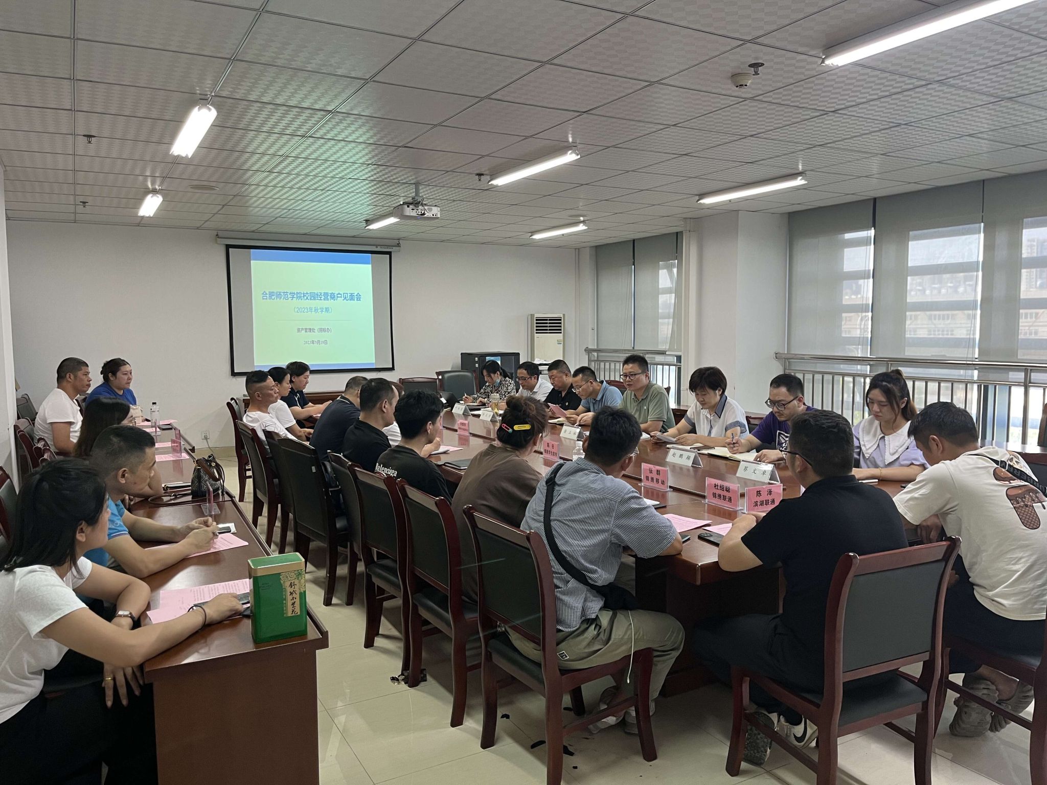 本网讯 为进一步规范校园商户的经营行为,提升服务育人水平,9月19日下午,在锦绣校区行知楼308室,资产管理处(招标办)组织召开了锦绣校区、滨湖校区校园经营商户见面会。15家校园经营商户负责人,资产管理处(招标办)全体工作人员参加会议。