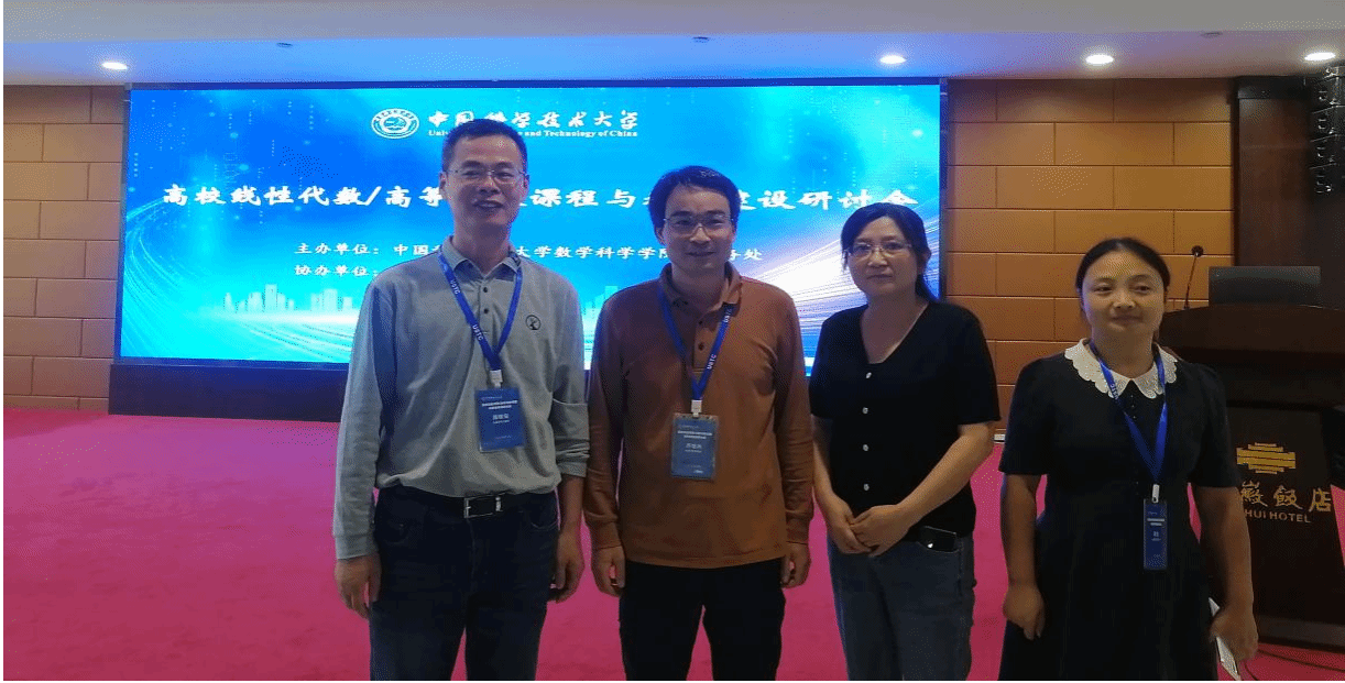本网讯 为贯彻2023年全国教育工作会议精神和《教育部高等教育司2023年工作要点》,深入探讨在新工科、新医科、新农科、新文科背景下线性代数课程建设的新内涵、教材出版的新趋势, 推进线性代数课程教学内容、教学方法和教学模式的改革与创新, 9月22-24日, 由中国科学技术大学主办,高等教育出版社协办,高校线性代数/高等代数课程与教材建设研讨会在合肥举行,数学与统计学院操晓娟、潘根安、陈业、齐继兵四位教师参加了此次研讨会。