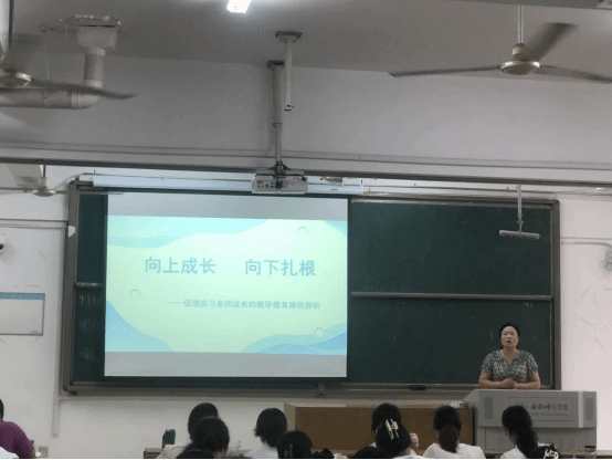 张岚老师的讲座以“向上成长,向下扎根”为主题,她结合往年的实习经验,谈到师范生在实习教学中应该注意的事项,明确实习的任务,端正实习态度,并从“新理念新征程新路径”、“依托语篇的主题混合式教学”、“德育:做自己人生的导演”等方面进行指导,为实习生在实践教学中更好的成长打下坚实的基础。此外,张老师就如何加强师范生技能学习提出了几点建议,她嘱咐实习生,实习就是个绝佳的历练机会,帮助实习生们找到自身的不足和将来努力的方向,将impossible变成I'm possible。