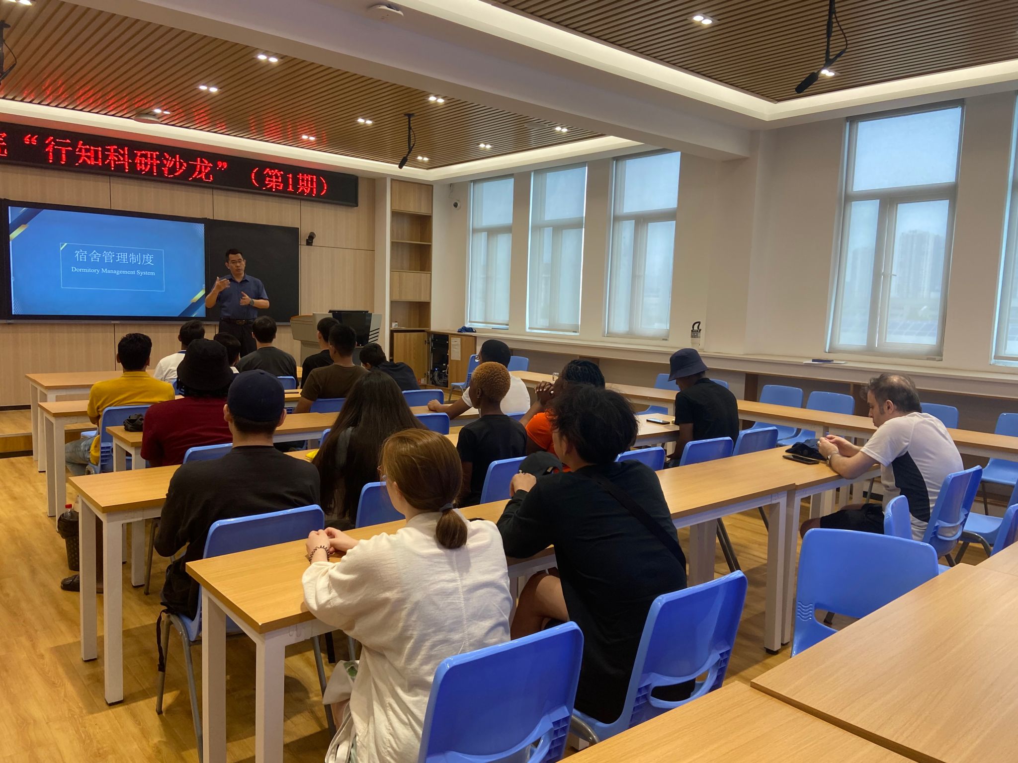 9月19日,国际教育学院向2023级留学生介绍了学校的基本情况、校区分布和周边设施,普及了来华留学生需了解的涉外法律法规和医疗保险等,说明了学校的宿舍管理、学习管理等制度,并向留学生着重强调了电信诈骗防范等事项。