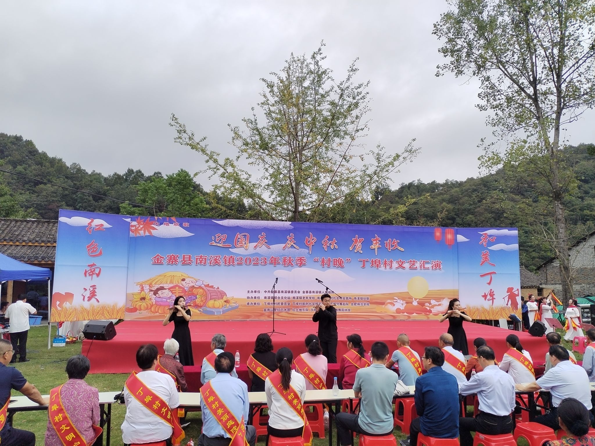 9月26日,南溪镇2023年秋季“村晚”丁埠文艺汇演在欢快气氛中举办。学院学生表演竹笛合奏《游击队之歌》、民乐合奏《赛马》、歌伴舞《幸福金寨》三个节目,为农民“村晚”增添别样色彩。