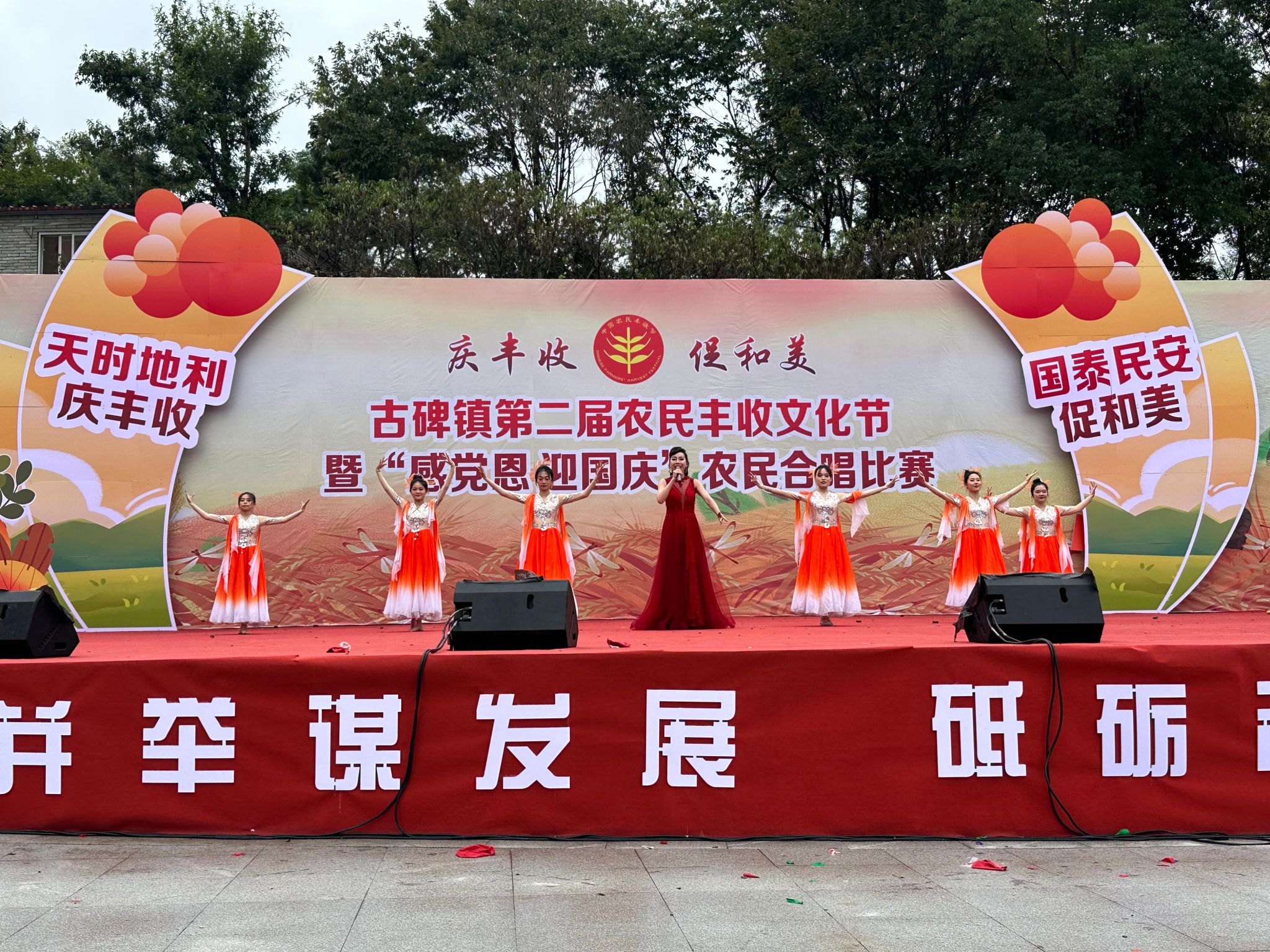 “庆丰收 促和美”,为庆祝第六个中国农民丰收节,金寨县举办了“第六届中国农民丰收节”。今年丰收节围绕全面推进乡村振兴、加快建设农业强国,聚焦建设宜居宜业和美乡村,向着全面推进乡村振兴、加快建设农业强国的目标前行。农村的全面振兴离不开农村文化振兴,音乐学院积极参与到金寨县对口帮扶乡镇的丰收节文艺演出活动中,为丰富农村文化生活做出贡献。