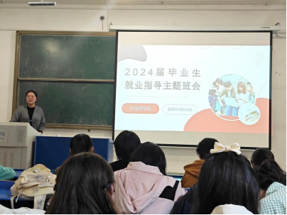 为切实推进毕业生就业指导工作,引导毕业生进一步了解就业形势,增强就业意识,10月10日晚,外国语学院在逸夫楼A101教室召开2024届毕业生就业指导主题班会,会议由毕业班辅导员冯晓敏主持,学院2024届各专业毕业生参加本次会议。