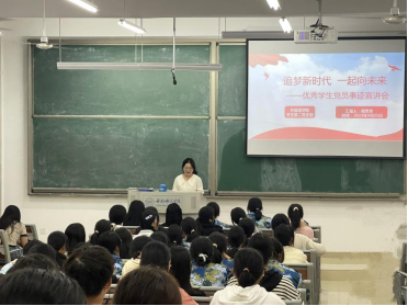 9月25日,为积极发挥党员的先锋模范作用,学院组织开展优秀党员事迹宣讲会,学生党员侯思芳以“追梦新时代 一起向未来”为主题,向新生们分享自己的学习、生活、班委工作经验以及入党的初心,并鼓励大家主动递交入党申请书,努力在实现中华民族伟大复兴的接力跑中,跑出我们的精彩。