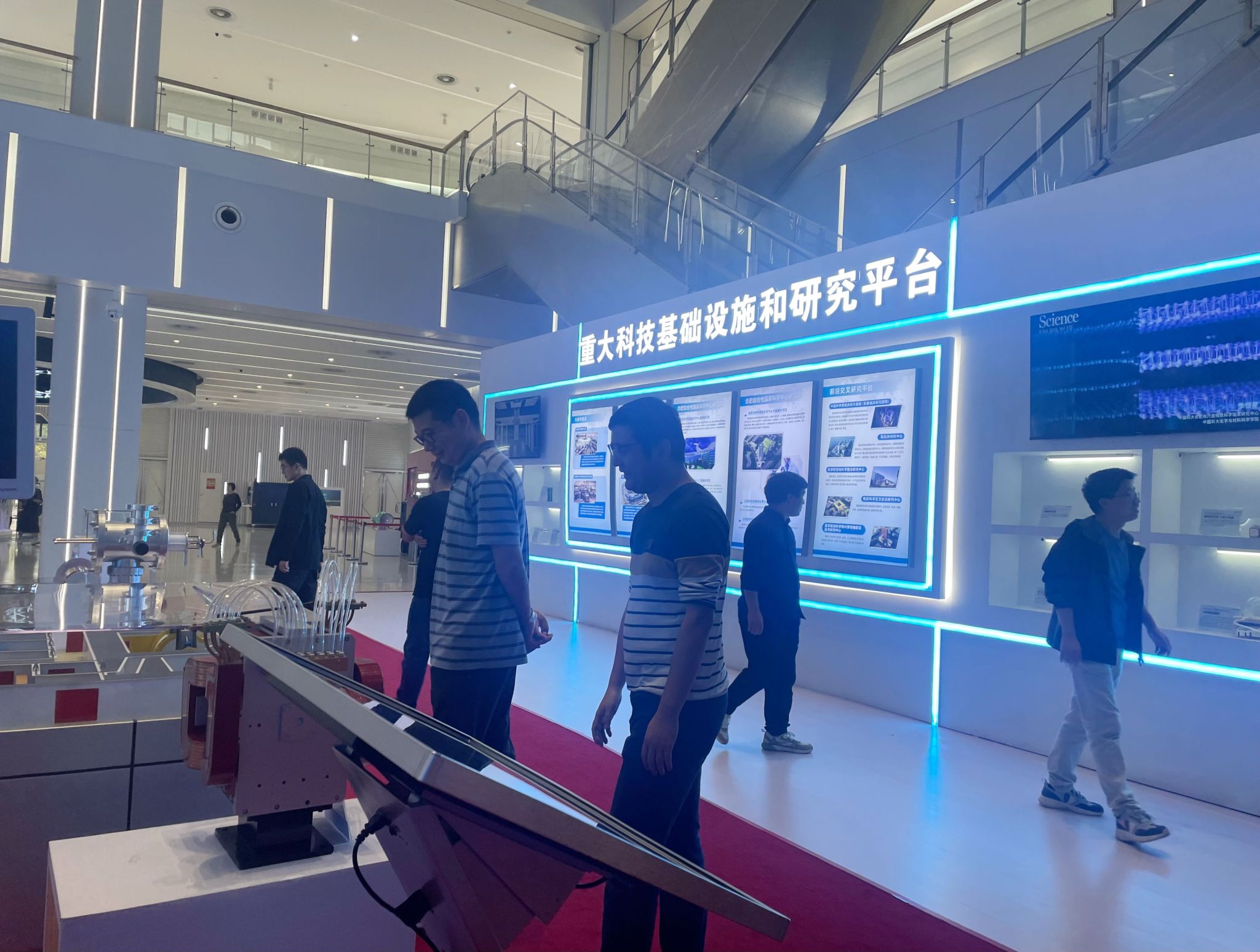 在安徽创新馆,大家详细了解了安徽省在科技创新方面的历程、成果及应用情况,并亲自动手体验,近距离感受了前沿科技力量,进一步拓展了自己的科技探索视野。在科技进步奖证书展示墙前,老师们在赞叹同行们的卓越成就的同时,纷纷表示要向他们多学习,沉下心来做研究,争取多出成绩,出好成绩。