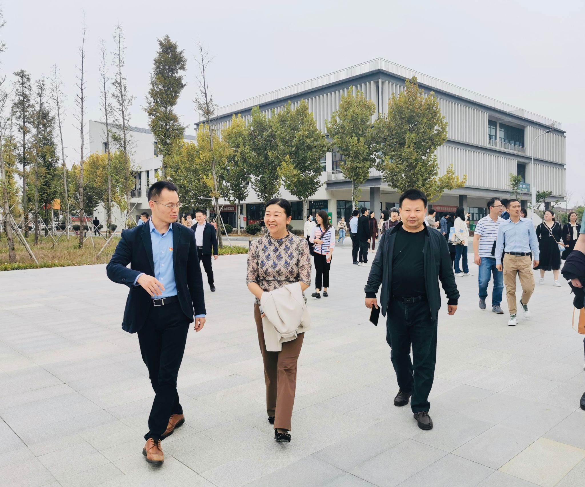 在滨湖校区综合管理办公室主任周荣的带领下,大家参观了教学楼、图书馆等地,远眺了二期工程建设情况,并详细询问了实验室建设规划。大家对滨湖新区的飞速建设、优美环境赞不绝口,并表示通过参观,我们对学校发展现状有了更深的了解,进一步激发了心中爱校敬业之情。