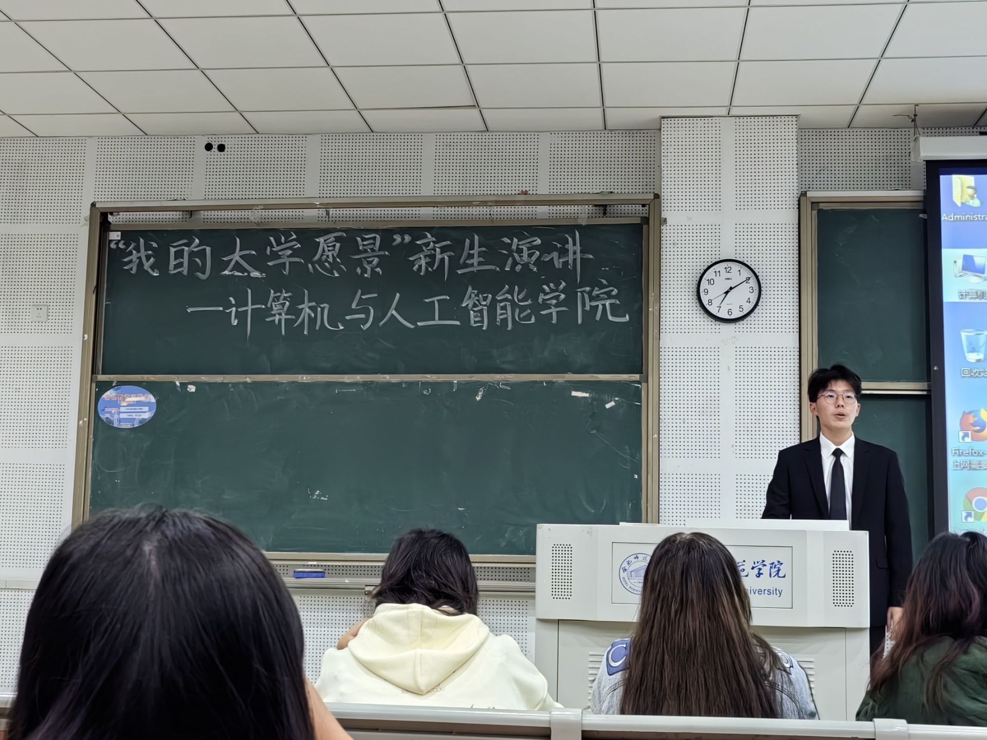 为引导广大新生积极地关注自身未来发展,规划好大学生活。计算机与人工智能学院于10月25日在滨湖校区博学楼A108举行“我的大学愿景”新生演讲比赛。