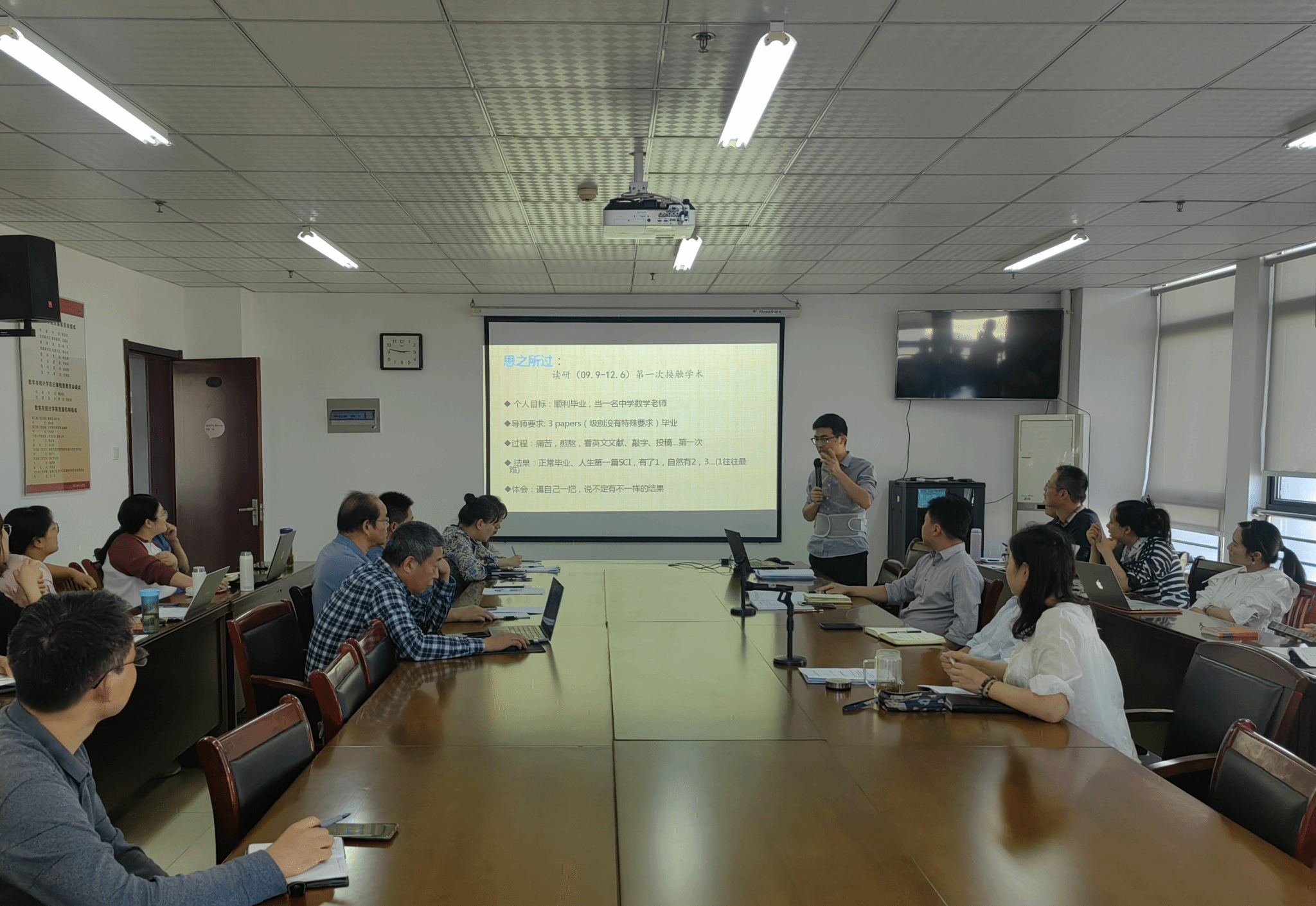 周辉以《科研的一点反思》为题进行分享,他从“思之所过”“思之所惑”“思之所获”“思之所苦”“思之所悟”五个方面讲述了自己在科研道路上的探索、困惑、收获、困难以及感悟,强调做科研要“贵在积累、坚持”。随后,他阐述了自己对于科研考核的理解和关于科研发展的思考。