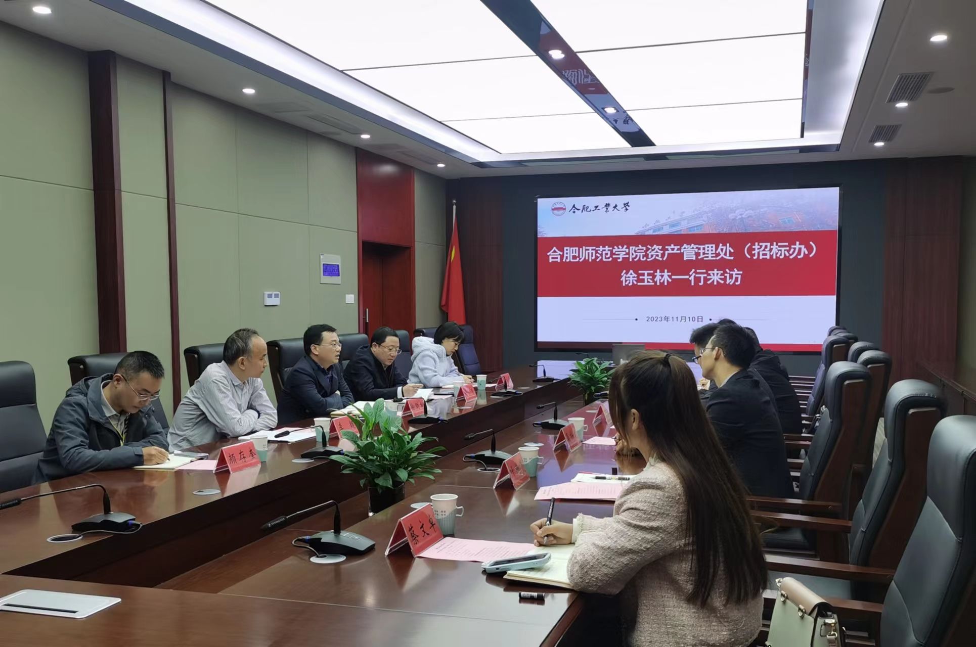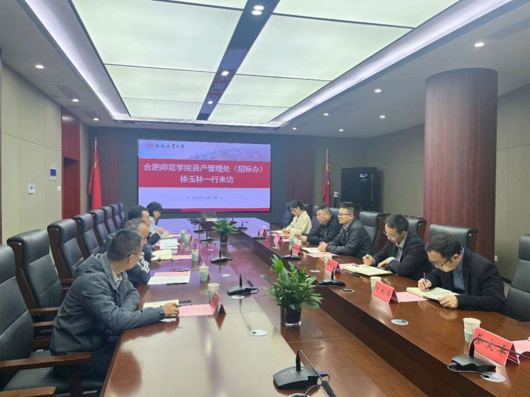 为进一步做好房产和国有资产管理相关工作,11月10日下午,资产管理处负责同志带队一行6人赴合肥工业大学开展专题调研学习。合肥工业大学国有资产管理处徐财松处长在屯溪路校区学术会议中心第一会议室热情接待了我院一行,副处长徐浩、李超和有关科室负责同志参加会议。