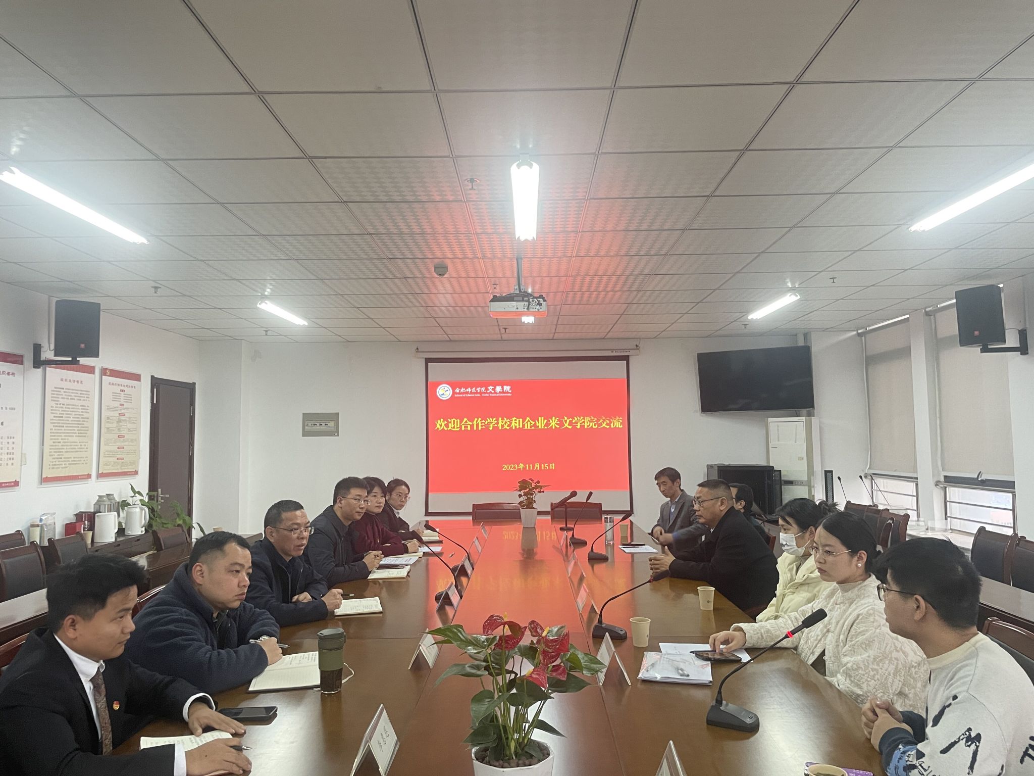 座谈会上,文学院领导对合作学校和企业来访交流表示的欢迎,对来院专程招聘汉语言文学、网络与新媒体、编辑出版学专业毕业生表示感谢,并介绍文学院办学、专业和毕业生等情况,希望在实习基地建设情况、人才输送、产学合作能进一步深入合作。