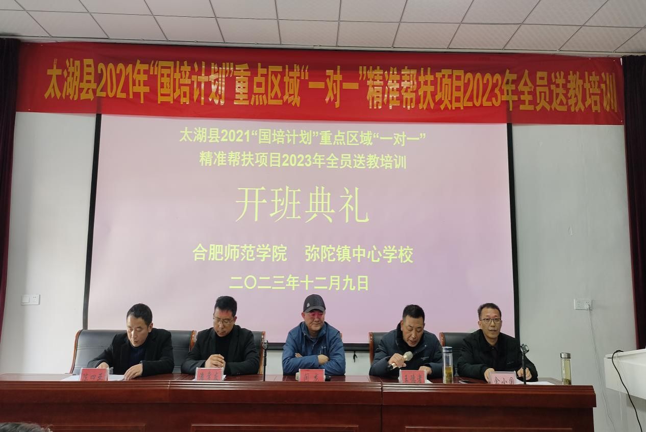 12月9日至10日,教育与心理科学学院赴太湖县弥陀镇中小学开展“2021年‘国培计划'重点区域‘一对一'精准帮扶培训项目——培训者团队集中送教活动”。弥陀镇初级中学领导、弥陀镇中心学校领导连同全镇中小学150位教师,共同参加了此次教研共同体培训。