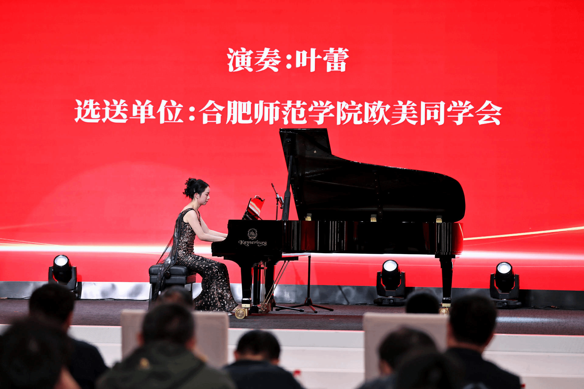 演出开场由音乐学院魏婧妹、李莉飒老师指导,带领吴棋、邢紫收、孙静静、欧阳文文、樊瑞、能景怡6名同学精彩上演古筝三重奏《馥影》,使人仿佛身临其境于春意盎然的花田,感受青春的朝气活力。音乐学院叶蕾老师表演了原创作品《又见大别山花开》钢琴独奏,深情诉说对家乡传统音乐文化的热爱,深情致敬大别山革命老区的革命先烈,表达了传承红色基因、坚定不移听党话跟党走的决心。