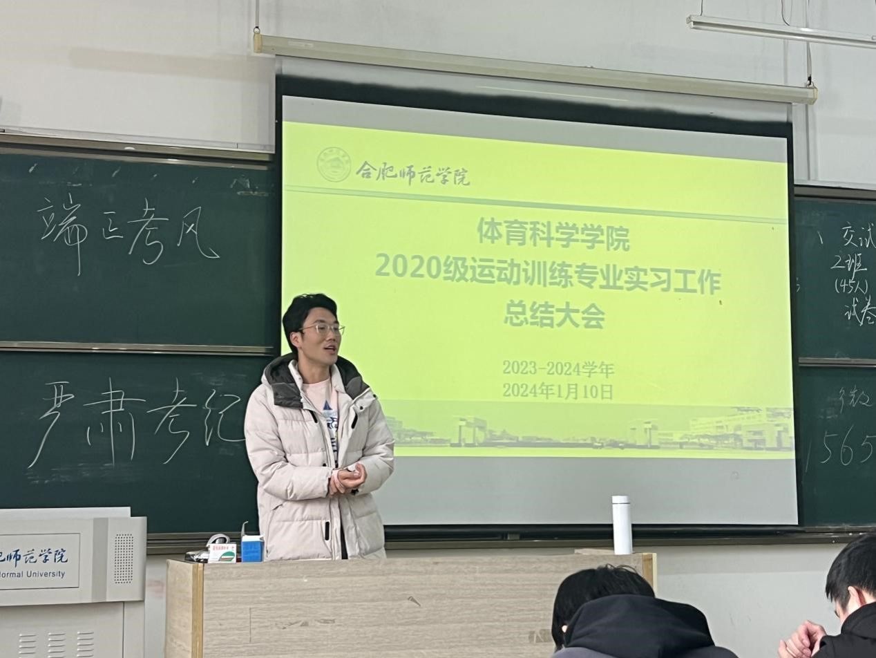 1月10日上午,体育科学学院2020级运动训练专业实习总结大会在博约楼101教室召开。运动训练系党支部书记陈秀、运动训练系副主任廖顺建、毕业班辅导员张康康及2020级运动训练专业全体学生参加总结大会。