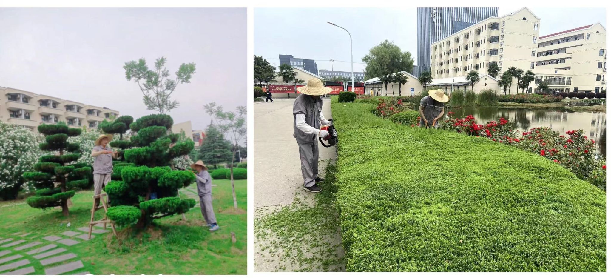 绿化养护提档进位,校园景色更加美丽。2023年,校园服务中心全年共清理落叶3500余包、修剪校园草坪90余次,人工除草30次,完成草皮补植约600㎡,在月牙湖土坡种植梨树60棵建成“梨园”、在逸夫楼北侧种植垂丝海棠、北美海棠、罗汉松等合计80棵,在风雨操场北侧种植白玉兰40棵,在平房南侧种植蔷薇400余棵,在行知楼南花坛内种植花叶络石共计80㎡。柳渠内花坛种植铜钱草,月牙湖种植莲藕……。